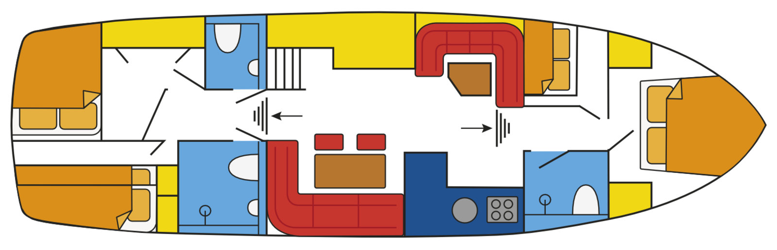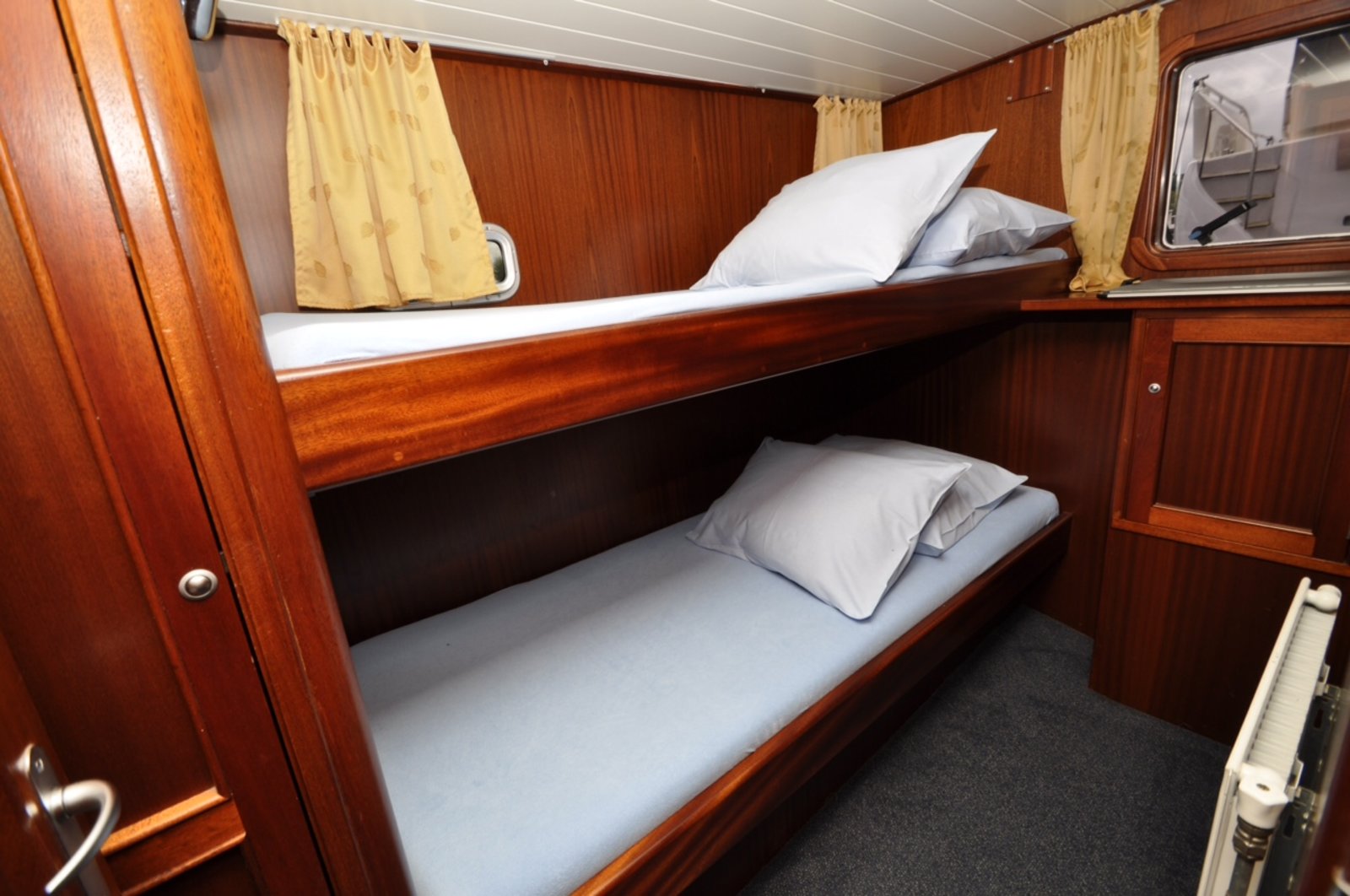 The aft cabin has two cabins with a separate toilet and a second combined shower and toilet.