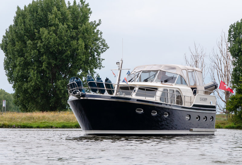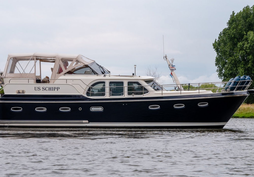 The pride of our fleet! The luxurious Drait Deluxe 42 "Us Schipp" is a wonderfully spacious steel motor yacht equipped with every comfort. Thanks to its bright and spacious interior, this motorboat allows you to fully enjoy your holiday on the water in a peaceful setting. With the XXL aft tent, you'll always be comfortable, warm, and dry. Pure luxury on the water!