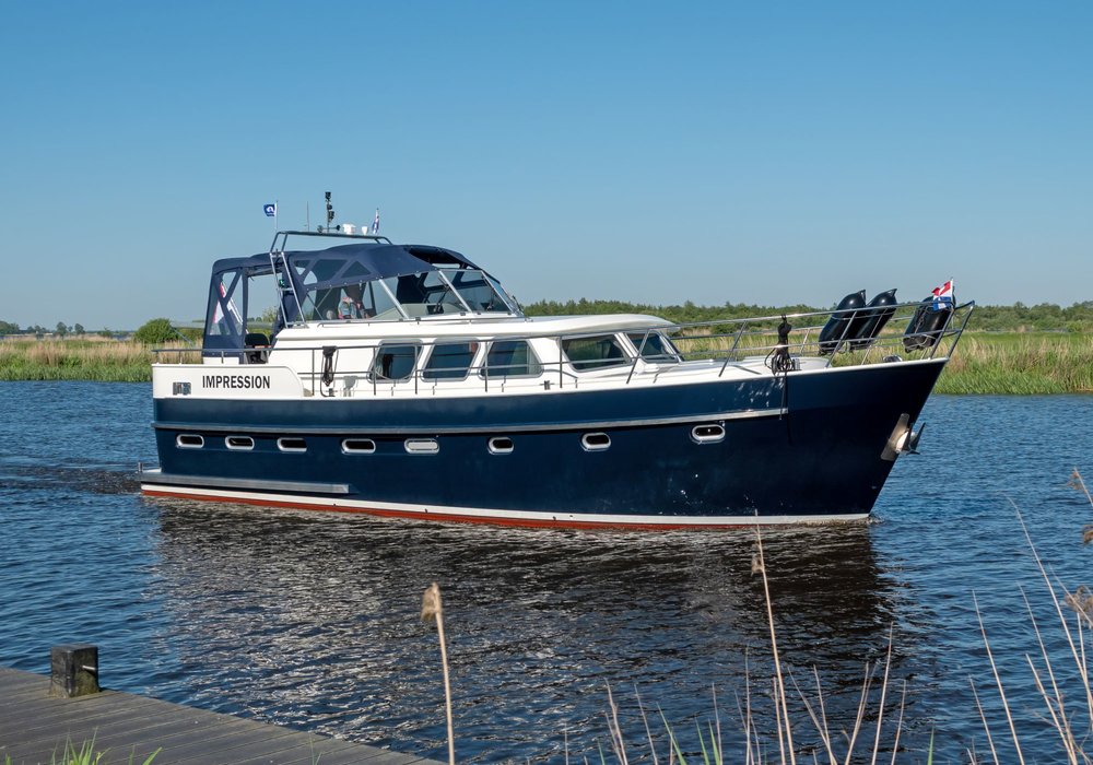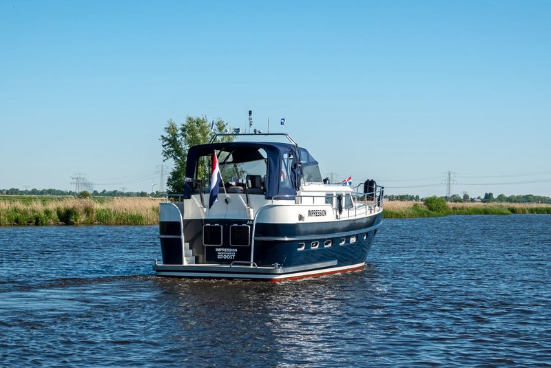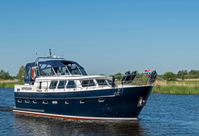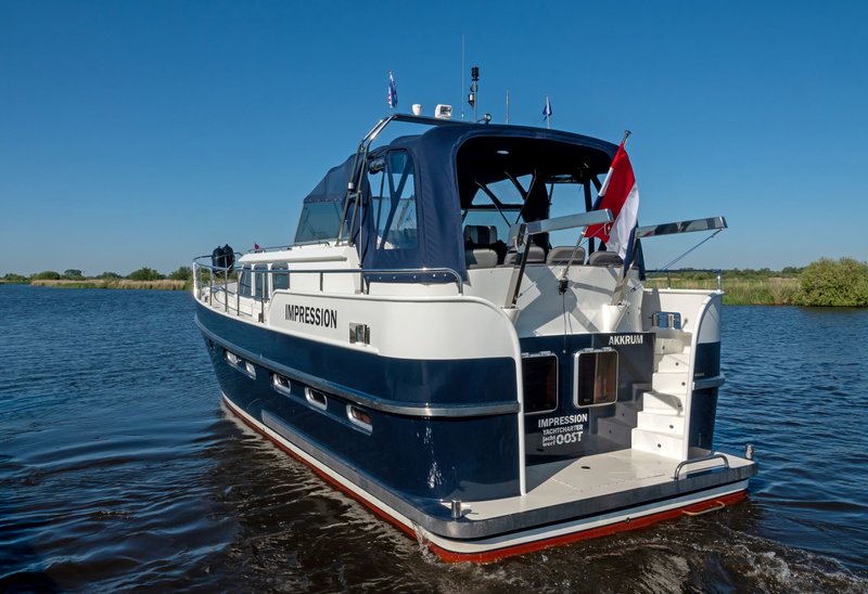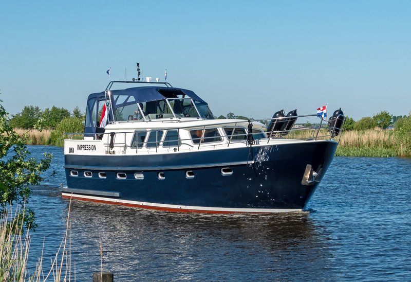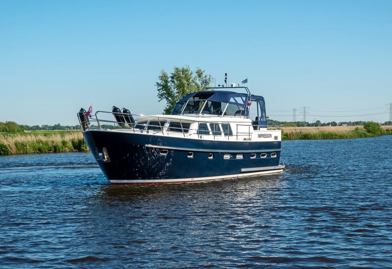 This luxury yacht, the 'Drait Impression 42', is another wonderfully spacious steel motor yacht equipped with every comfort. Enjoy your holiday on the water in a peaceful setting. Purchased from its original owner in 2025, the yacht has always been privately owned. It's a stylish vessel with solid teak interiors. The XXL aft tent ensures you'll always be comfortable on the spacious covered aft deck, warm and dry.