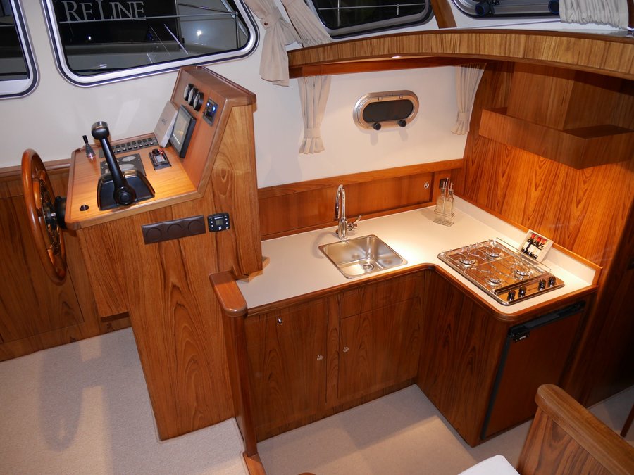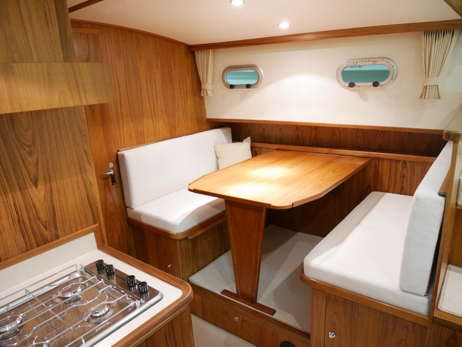 The Oostvaarder's modern interior with its open cockpit reflects the character of Jachtwerf Oost: modern and progressive. Whether you prefer oak or walnut, fabric upholstery, or carpeting, we will do everything we can to fulfill your wishes. We'd be happy to discuss the possibilities with you to create an interior completely tailored to your needs.
